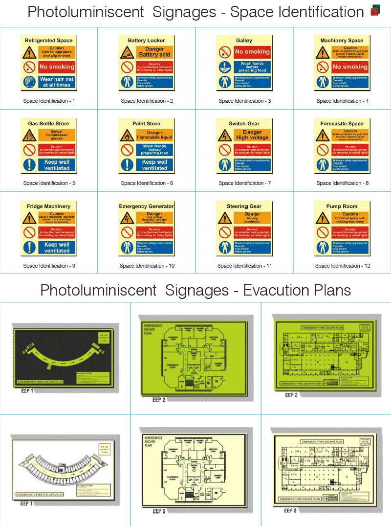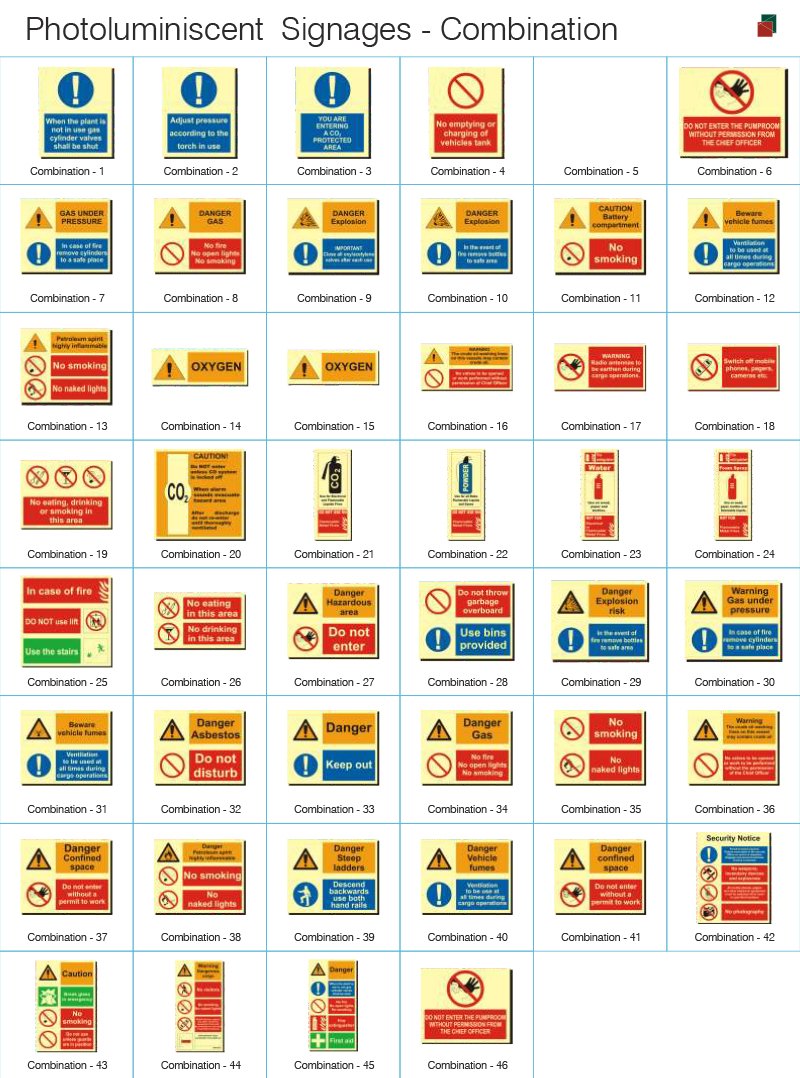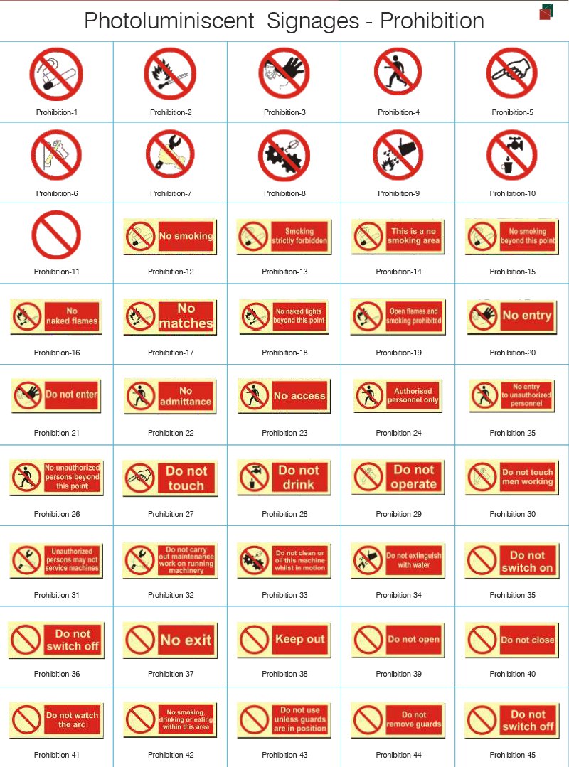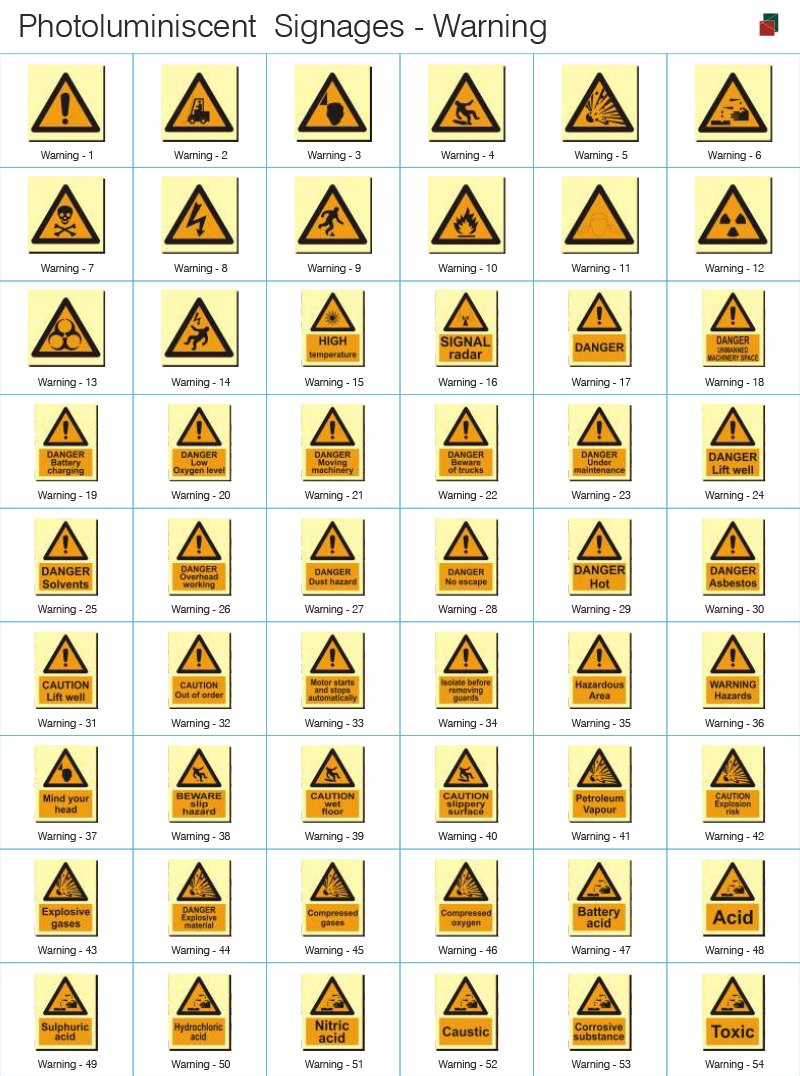 This comprises of a photoluminiscent material which emits a clear and visible glow when there is power failure and total darkness. The material requires no battery powder or any other trigging source of emission of a glow. On exposure to light, natural or artificial , it absorbs and stores light energy and then absence of light , this captivated light is released to give of luminous glow by its non toxic chemical. All the signs are made and designed as per national & international standards. Customized designs to customer requirement available in any language , size or matter on request